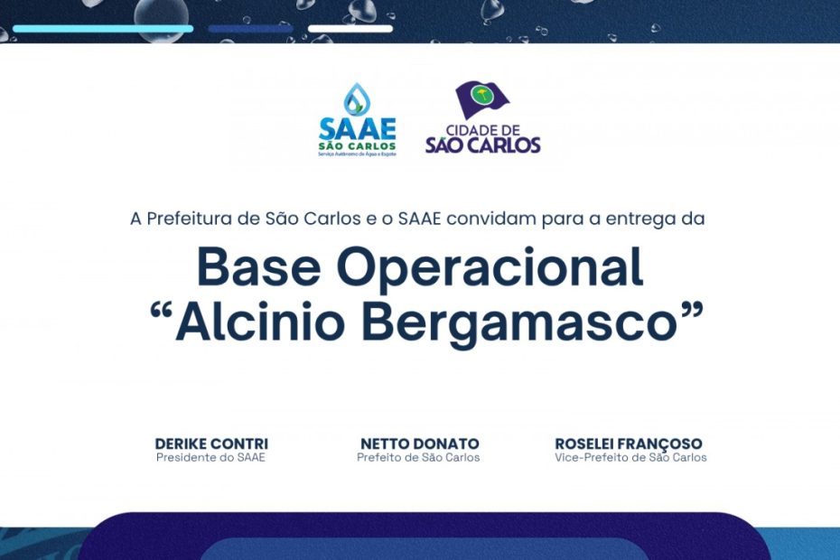 A Prefeitura de São Carlos e o e o Serviço Autônomo de Água e Esgoto (SAAE) tem a honra de convidar você, para a entrega… Continue a ler »BASE OPERACIONAL “ALCINIO BERGAMASCO”