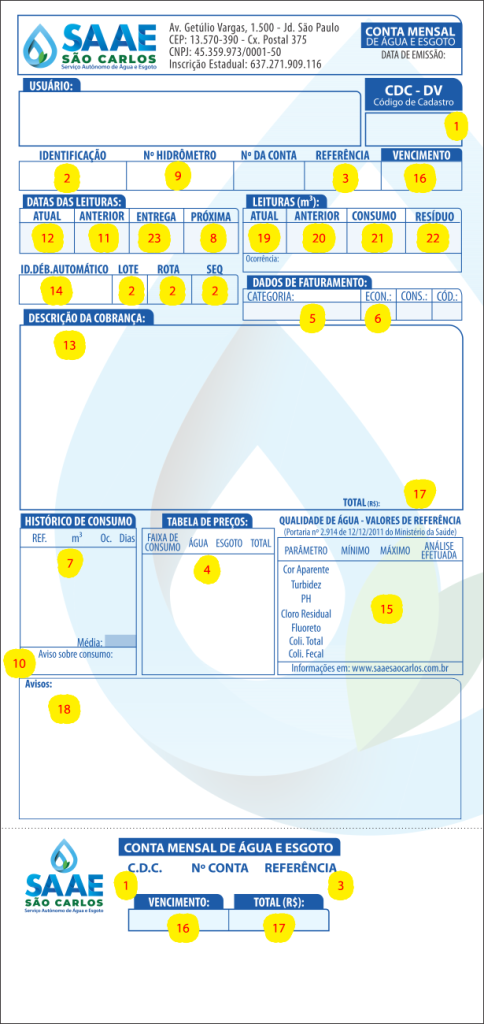 Atualmente, o SAAE São Carlos trabalha com duas formas de impressão de contas de água e esgoto.
