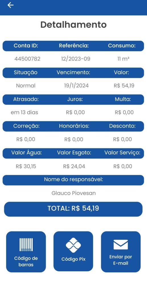 Entre os serviços relacionados às contas do usuário é possível solicitar, por exemplo, segunda via de conta (copiar pix para pagamento e enviar conta por e-mail); relação de débitos com o SAAE; acompanhamento de protocolos e processos; autoleitura; histórico de consumo e consulta de dados cadastrais.