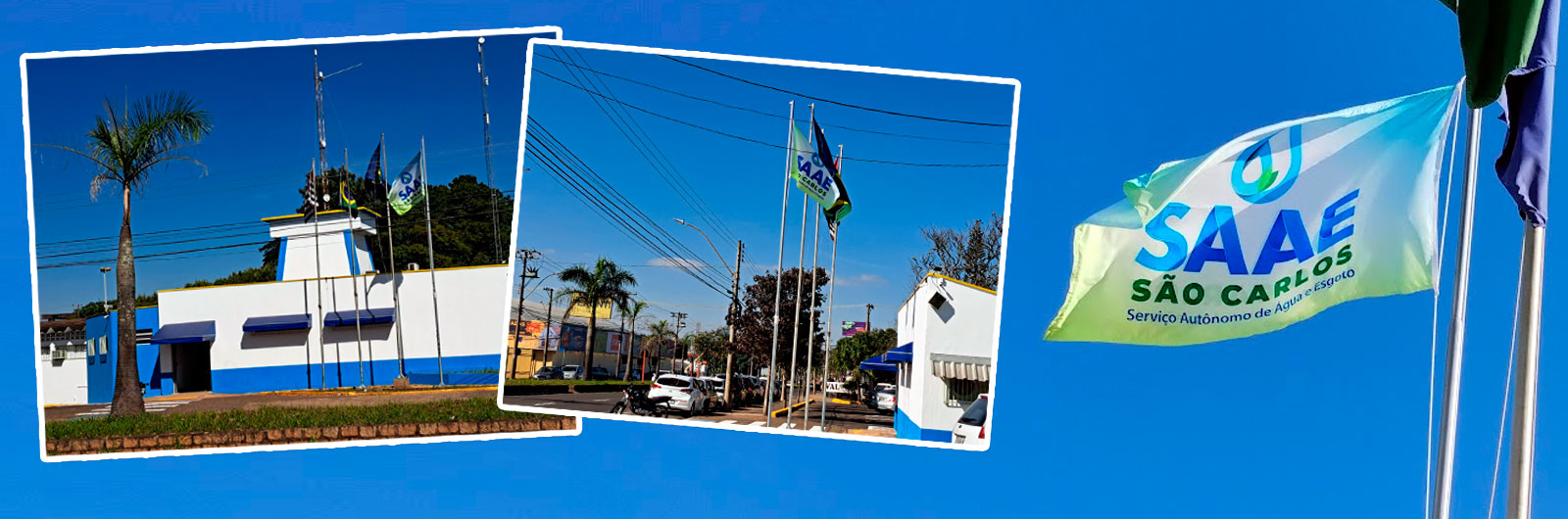O Serviço Autônomo de Água e Esgoto de São Carlos (SAAE) colocou a bandeira da autarquia no quarto mastro na frente da sede administrativa na Avenida Getúlio Vargas, conforme orienta a ordem pelo protocolo oficial. Já estampada com a nova logomarca, lançada e apresentada ao público no último dia 26 de junho durante as comemorações dos 54 anos do SAAE, ela está ao lado das bandeiras do Estado de São Paulo, do Brasil e da cidade de São Carlos.