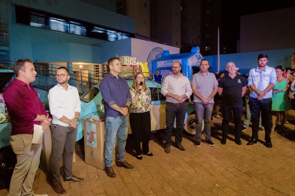 O presidente do SAAE, Mariel Olmo, agradeceu a presença de todos em geral e disse que a Cantata foi um fechamento de 2023 com muita alegria e emoção. “Foi um ano de muito trabalho para o SAAE e para a Prefeitura e esse encontro é como uma despedida do ano que chega ao fim e boas vindas ao ano que vai chegar. Prossigamos com o mesmo esforço e que nossas conquistas sejam renovadas em 2024”. A presidente do Fundo Social de Solidariedade, Dra. Rosaria Mazzini, agradeceu ao SAAE e a todas as pessoas que colaboraram com a campanha. “Nossa gratidão ao presidente Mariel Olmo e toda a equipe do SAAE e colaboradores externos. Esses brinquedos, com certeza, garantirão a alegria de muitas crianças neste Natal”.