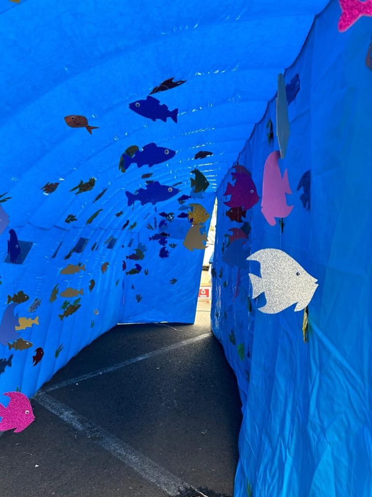 Túnel inflável que simula rio limpo e sujo, maquete da ETE, mostra de tratamento de água na ETA e carteirinha de ‘Guardiões da Água’ foram as atrações entre as crianças.