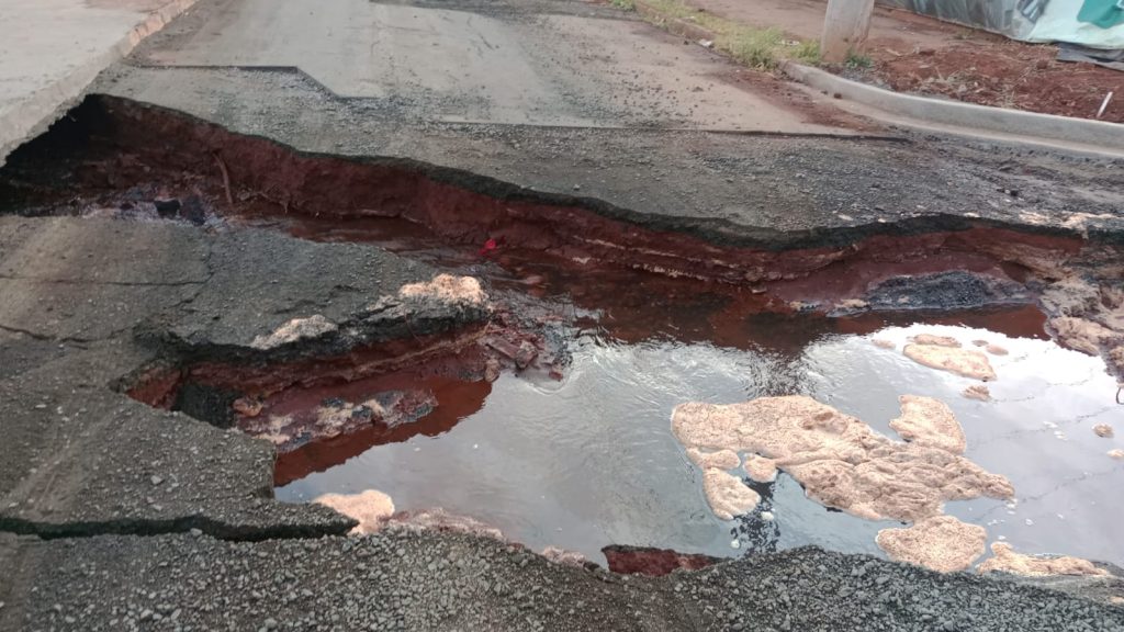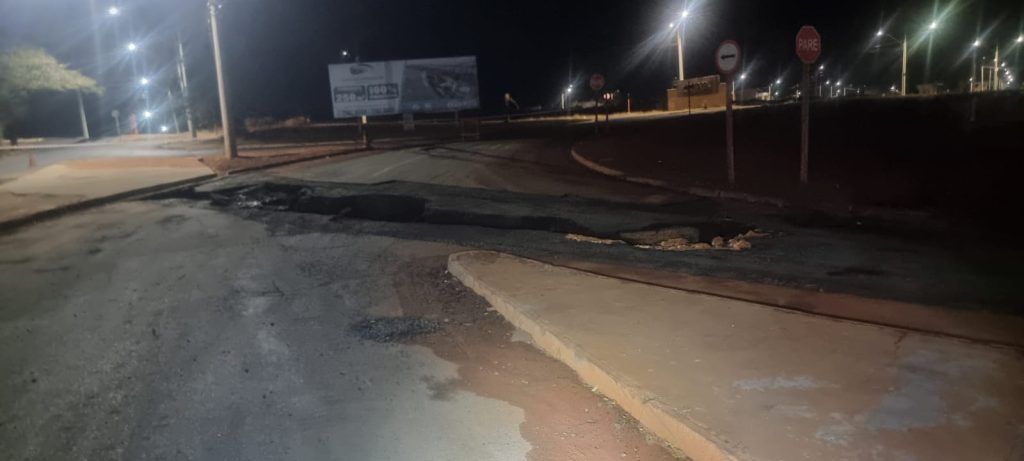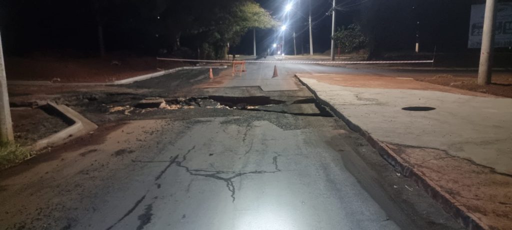 Equipes da autarquia já estão no local para providenciar o reparo, bem como a Guarda Municipal e Agentes de Trânsito para orientar o trânsito.