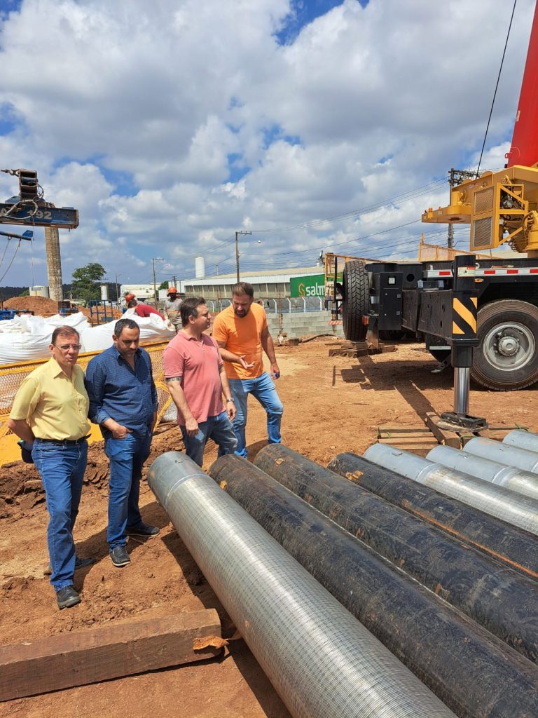 POÇO PROFUNDO E RESERVATÓRIO ELEVADO – O trabalho inicial de perfuração e, agora, o de colocação dos tubos, fazem parte da construção geral do Centro de Produção, Reservação e Distribuição de Água Potável na área própria da autarquia localizada no Cedrinho (Distrito Industrial), que tem 1.713 m2. Neste espaço, está sendo construído o poço tubular profundo, de 326 m, com capacidade de vazão de 200 m3/h, bem como um Reservatório Metálico Apoiado com capacidade para 2.650 m3 de água, ou 2 milhões e 650 mil litros.