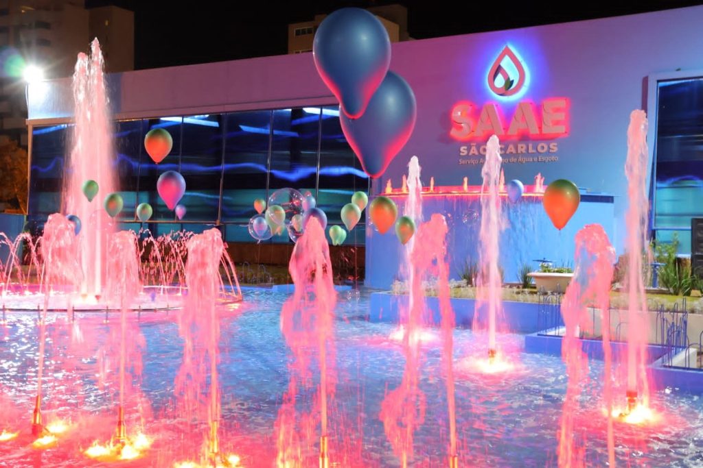O Serviço Autônomo de Água e Esgoto de São Carlos (SAAE) devolveu à população na noite do último sábado, 11/11, um antigo ex-cartão postal no coração de São Carlos: o espaço público ‘João Augusto Bianco’ na entrada da Estação de Tratamento de Água – ETA Vila Pureza, na Avenida Dr. Carlos Botelho, 1.201. A revitalização foi o resgate de um ambiente e de um cenário que encantaram gerações. Durante a cerimônia, o show de luzes e cores, aliado ao projeto paisagístico ao redor do espelho d’água e cascata, deu o tom da nostalgia de um local que estava esquecido há vinte anos. A nova logomarca da autarquia na fachada também ganhou iluminação especial.