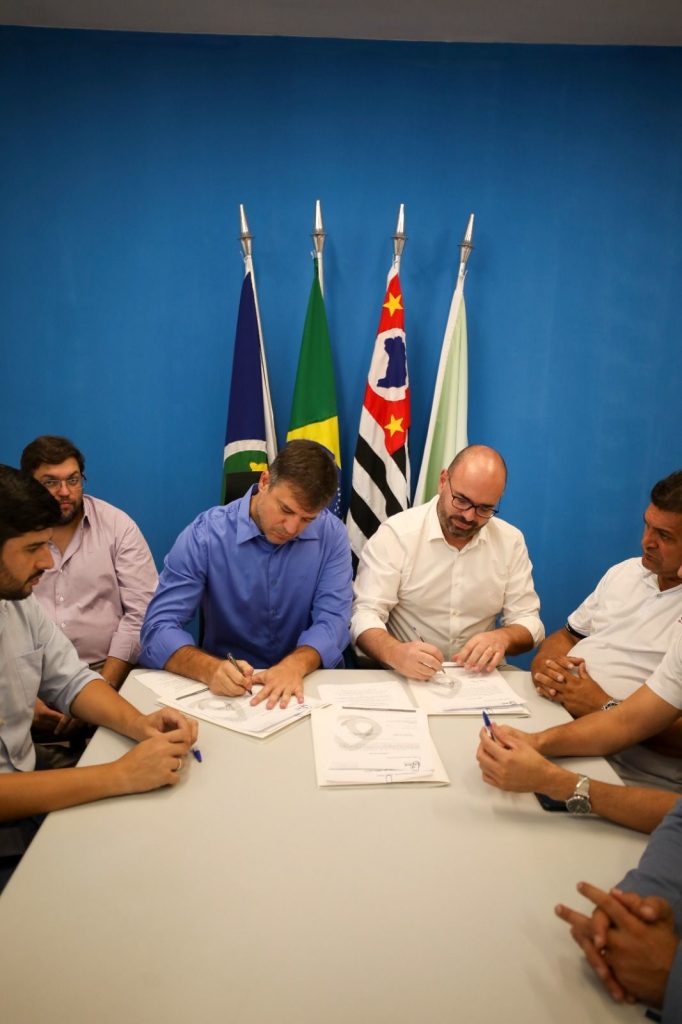 O presidente do Serviço Autônomo de Água e Esgoto de São Carlos (SAAE), Engenheiro Mariel Olmo, assinou, na manhã desta quarta-feira, 07/02, o contrato com a empresa Celebre, de São Paulo – SP, três ordens de serviços para a reforma dos cinco Ecopontos e doze reservatórios de água, além da limpeza de galerias e bueiros e manutenção dos piscinões de São Carlos. O investimento total será de R$ 12,1 milhões.