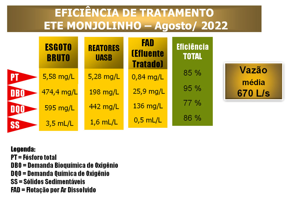 O esgoto tratado nas ETEs Monjolinho, Água Vermelha e Santa Eudóxia atendem às legislações vigentes (Decreto 8468) e as águas dos referidos rios estão compatíveis com as suas respectivas classificações (CONAMA 357).