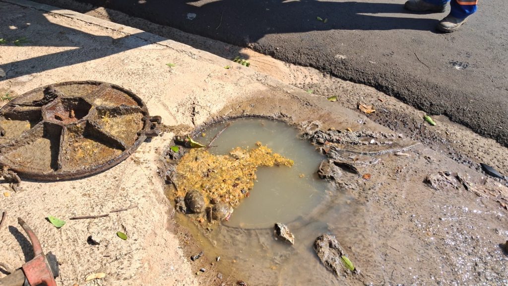 Rua: Luiz Ollay. Desobstrução da rede de esgoto